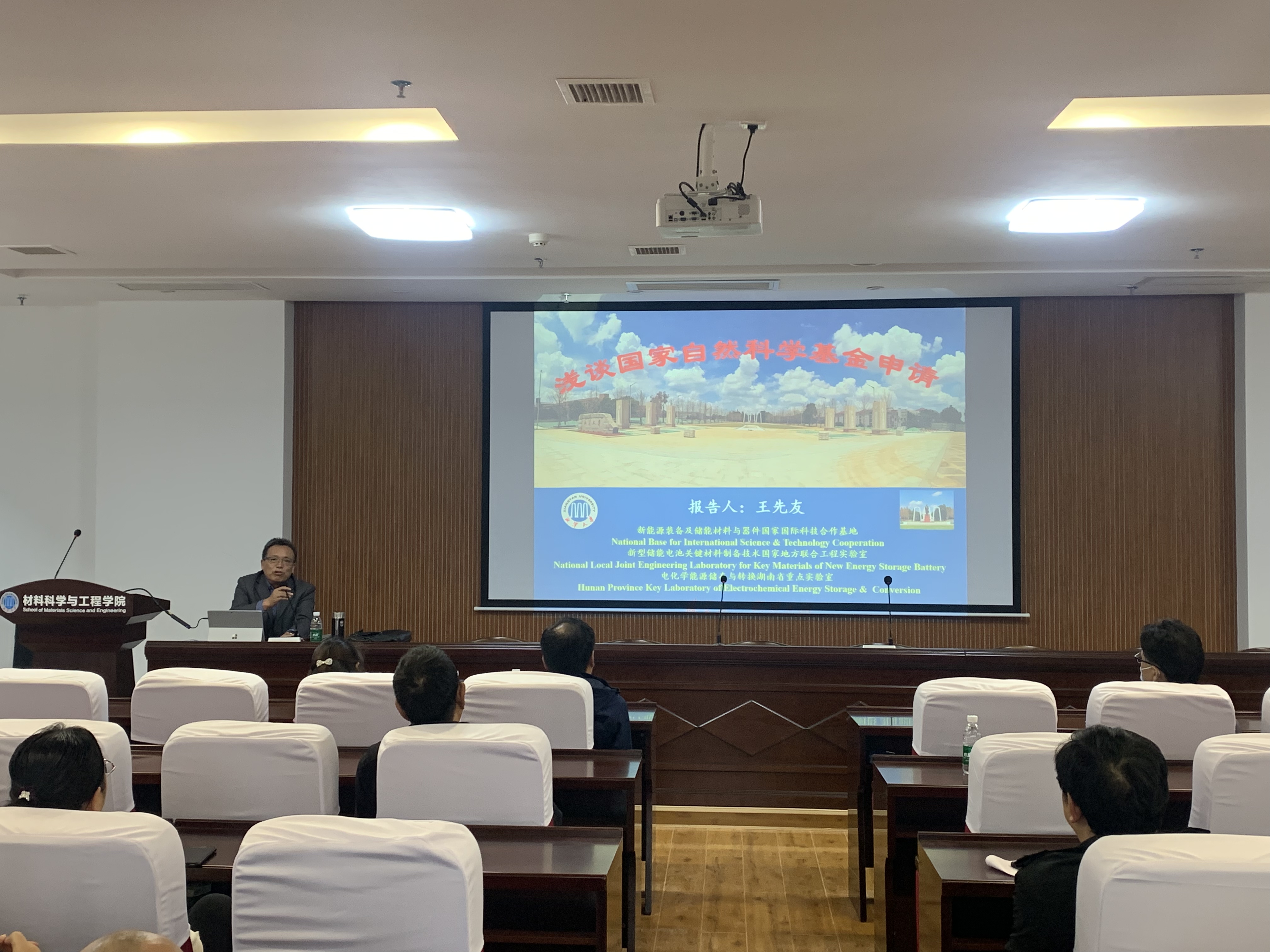 为进一步推进学院科研高质量发展,做好2022年度国家自然科学基金申报工作,11月17日下午,材料科学与工程学院举办科研工作推进会议,会议邀请化学学院王先友教授做专题讲座,材料院全体教职工参会。会议由执行院长尹付成主持。